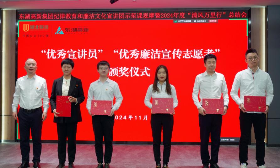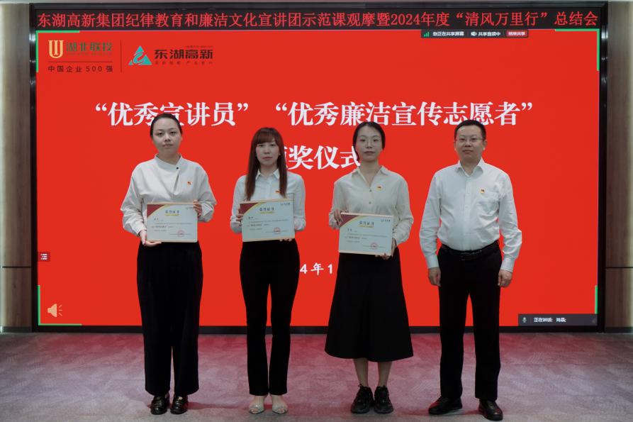 在2024年度“清風萬里行”總結表彰環節,會議宣讀了《關于表彰“優秀宣講員”“優秀廉潔宣傳志愿者”的決定》,并為“優秀宣講員”獲獎者、“優秀廉潔宣傳志愿者”獲獎者代表頒發證書。